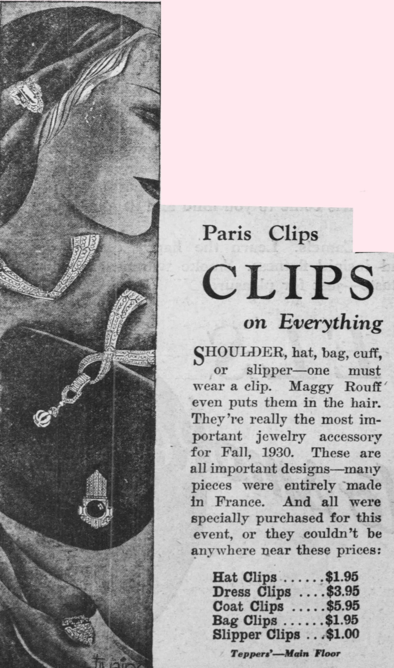 Department store advertisement, 1930. The Courier News (Tepper’s, Main Floor).